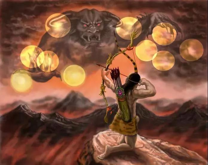 传说古时候,天空曾有10个太阳。一天,这10个太阳同时出现,酷热难挡。弓箭手后翌射下了其中9个太阳,拯救了地球上的生灵。他偷了长生不死药,却被妻子嫦娥偷偷喝下。此后,每年中秋月圆之时,少女们都要向月宫仙女嫦娥祈福的传说便流传开来。